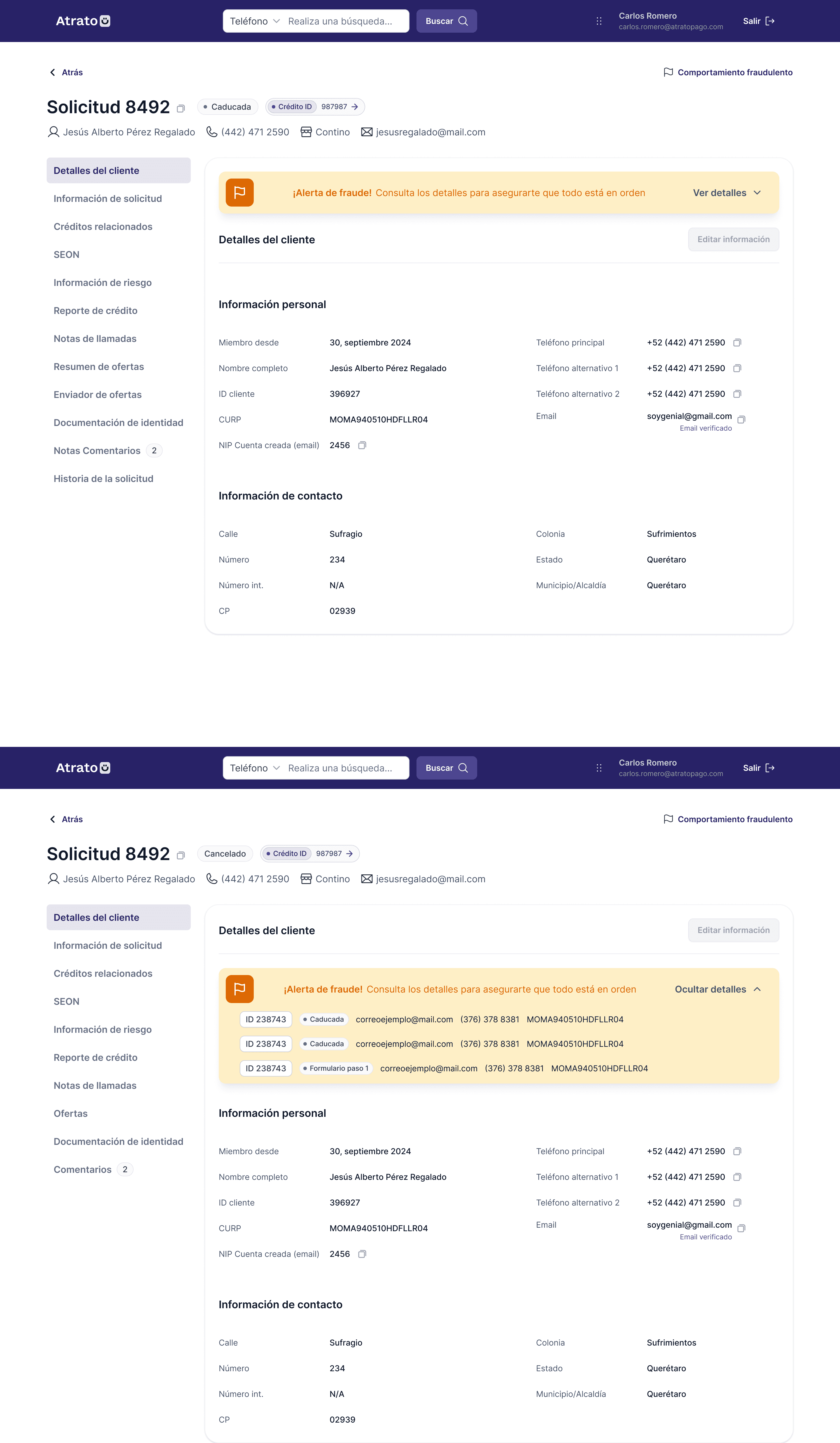 A CRM is an essential tool for companies where a huge number of transactions happen all the time, and dozens of people are consulting, analyzing, and making important business decisions based on personal and sensible information. I had the chance to redesign a CRM for a top-tier BNPL company based in Mexico where the main concern was data privacy and eliminating 3rd Party dependencies ensuring a new solid and robust tool for decision-makers, in this case, credit approbation associates.